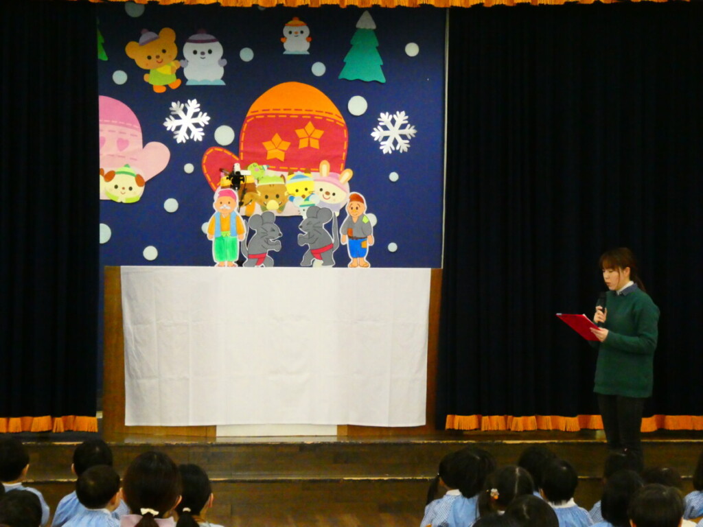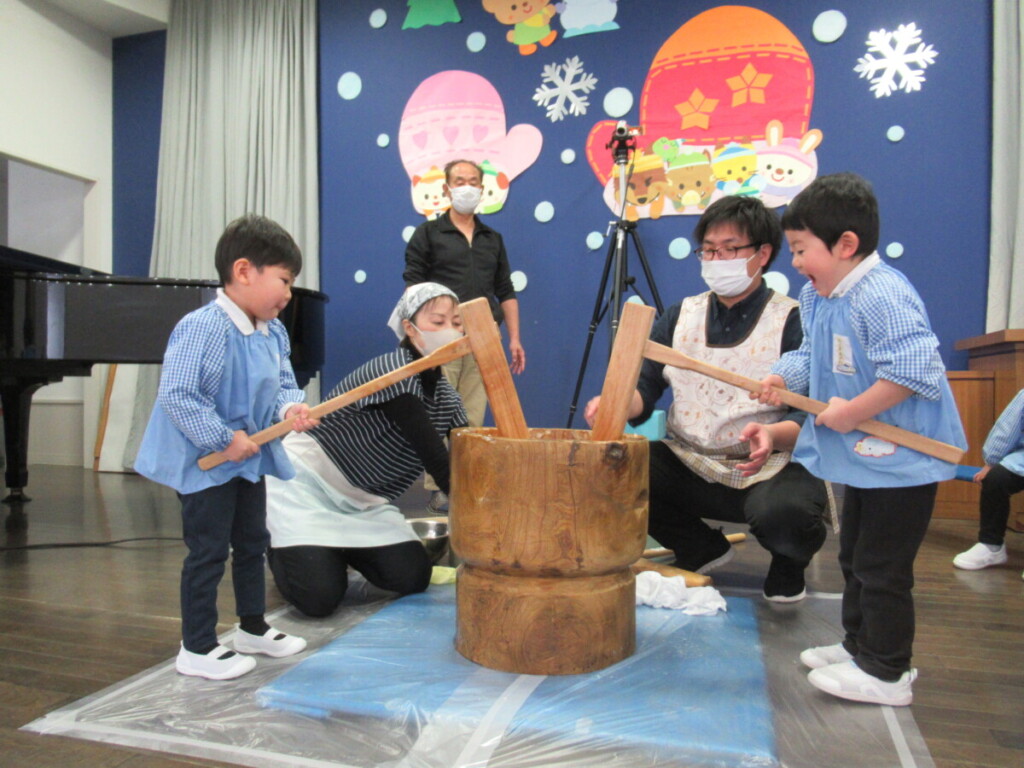 まずは担当の先生と園長先生からおもちについてのお話をしてもらいました。