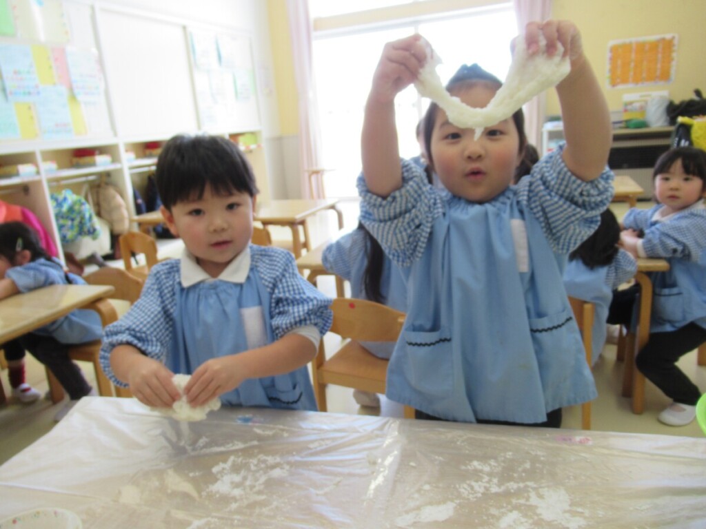 クラスに戻って、ついたおもちに触れてみるこどもたち😊