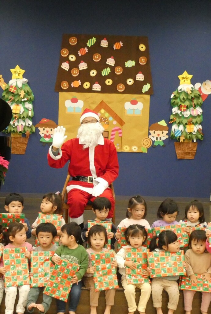 最後にサンタさんから一人ひとりプレゼントをもらって、クラスごとに記念写真撮影📷✨