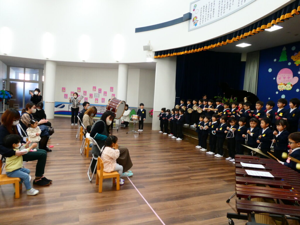 また、4月からは年長さんになる幼稚園のお兄さんお姉さんが歌と合奏の披露♪