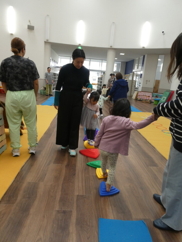 カラフルな飛び石を歩いたり、たーくさん体を動かしました。
