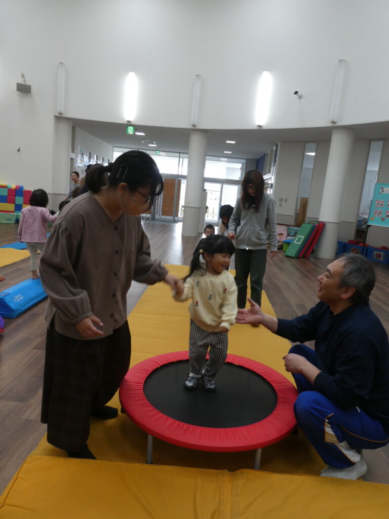 その後は、トランポリンでジャンプしたり、ゆらゆら平均台を渡ったり、