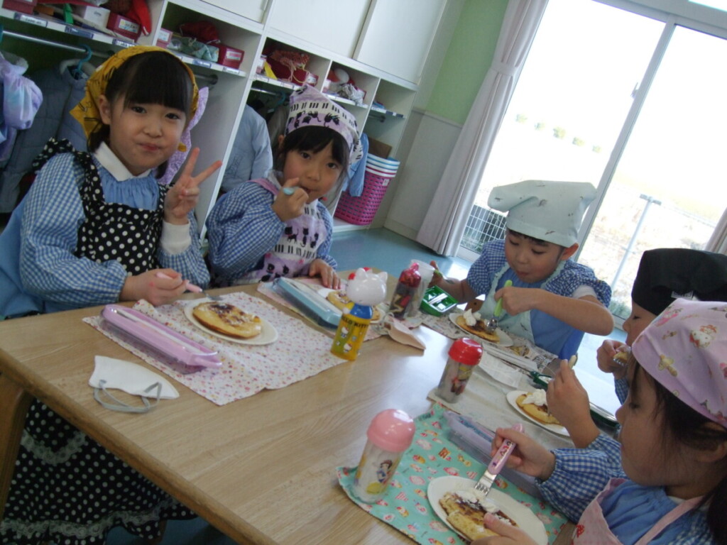 ホイップクリームやシロップをかけて『いただきまーす!!』