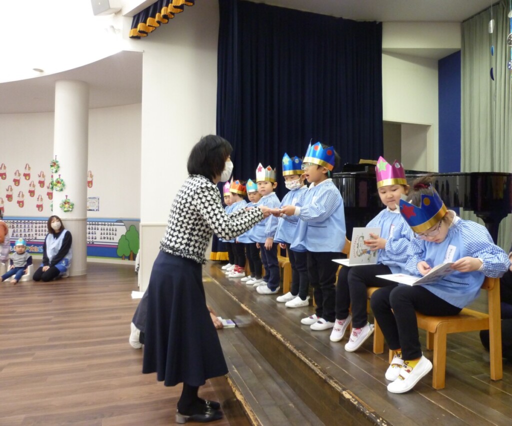 園長先生からのお祝いのお話では、〇ん〇んという食べ物を食べると元気に丈夫に育ちますよと教えていただきました✨(例えば…にんじん、れんこんなどがありますね(*^-^*))