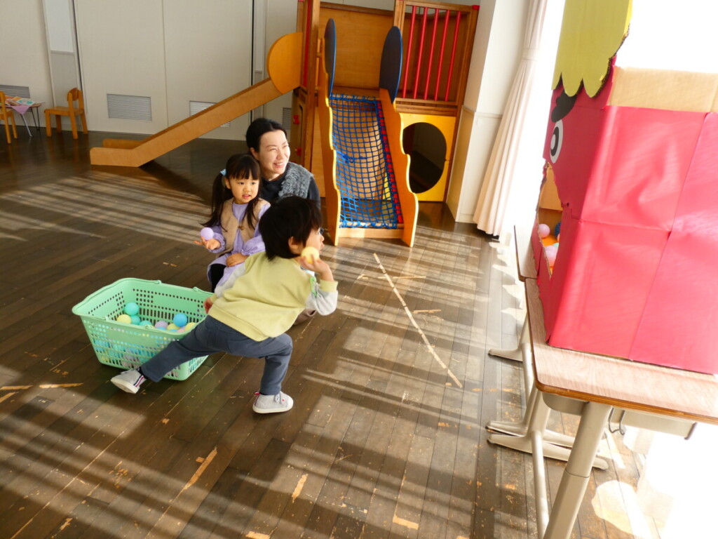 お口の中にボールを投げ入れて遊びました😊