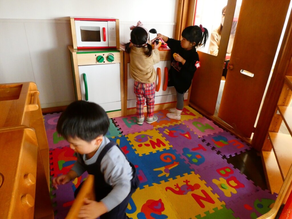 今日はおままごとのおうちの2階にお人形さんも登場(*^-^*)