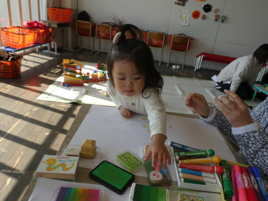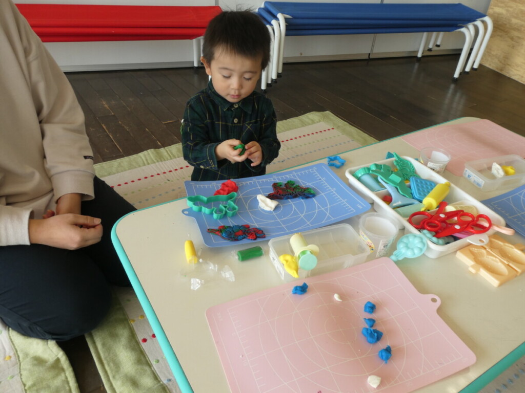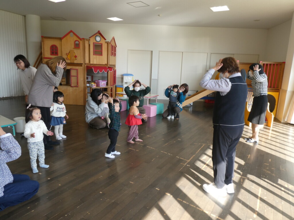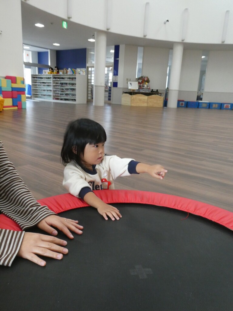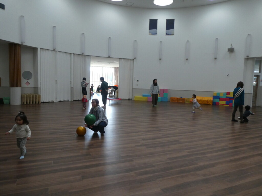 広ーいホールでボールあそびをしたりトランポリンを楽しんだり、体も動かして遊んでいます♪