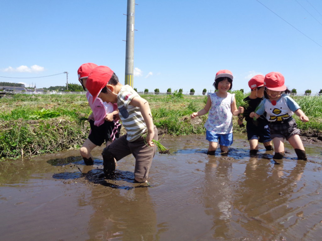 【年長】のそみ組・ひかり組が田植えを行いました