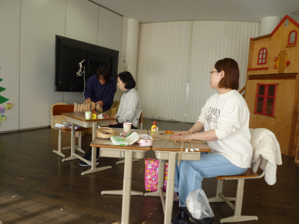 そして紙バンドクラフト教室では、先週から引き続き持ち手のついたかごを編んでいきました♪